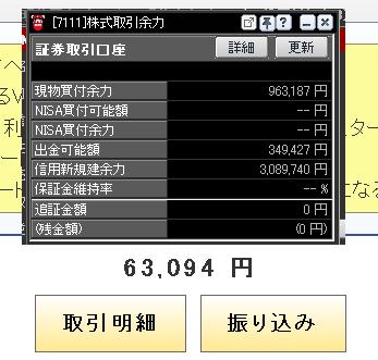 口座残高 96→106(+10万) 下痢弁総理の失言のおかげで今日は大変な恐怖相場(・ω・´;) 前場はsmedioのみをリバ鳥目線でいじって、なんとか+2万で引け 後場は、smedioの寄りからの上げをがっつりとれて+10万乗せ この後も難しそうだし、smedioのS高引けを期待するのも分の悪い決め打ちに 見えるので、13時前ですが早引けします 明日は仕事なのでまた来週(´・ω・`) ノ ![]() 口座残高 102万→96万(クレカ決済と手元用に6万出金しました)